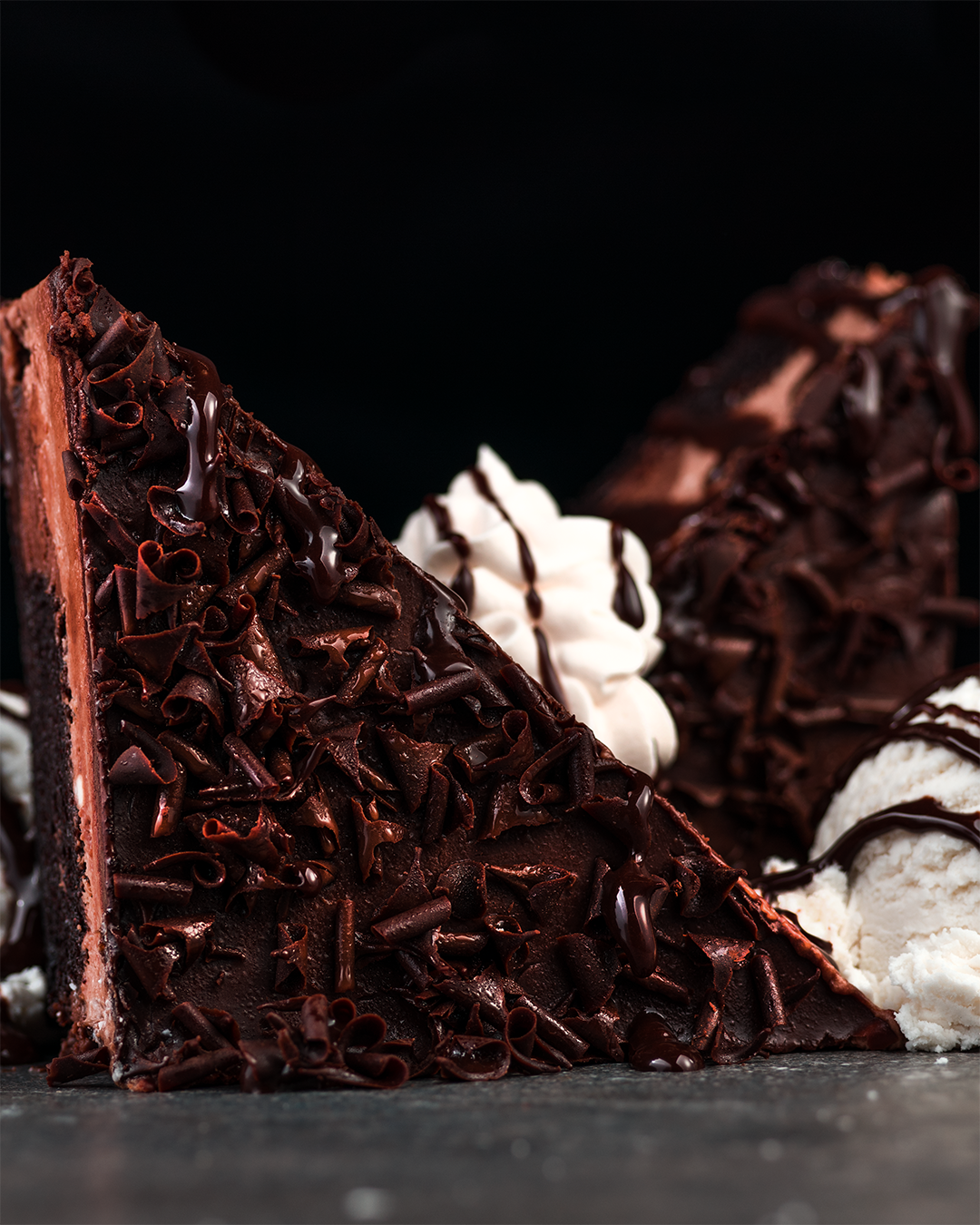 Chocolate stampede 9.79 | six kinds of chocolate with vanilla bean ice cream.